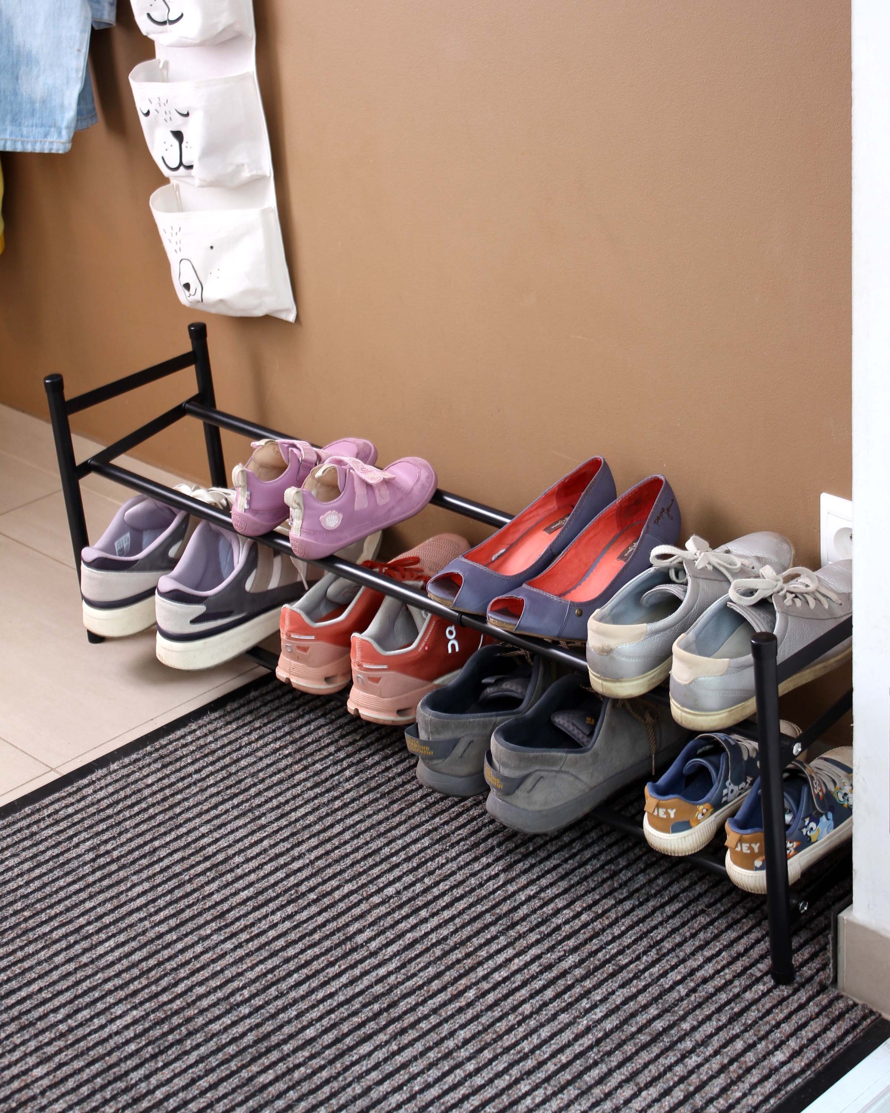 Pevná kovová konštrukcia zaisťuje stabilitu a dlhú životnosť, zatiaľ čo otvorený dizajn umožňuje dobré vetranie obuvi a rýchly prístup ku každému páru. Botník je dodávaný v rozloženom stave a jeho zloženie je veľmi jednoduché - zvládnete ho v priebehu niekoľkých minút iba s pomocou bežného krížového skrutkovača, bez potreby špeciálneho náradia. Vďaka kombinácii nastaviteľnej šírky, kompaktných rozmerov a vysokej kapacity je ideálnou voľbou pre každodennú organizáciu obuvi.