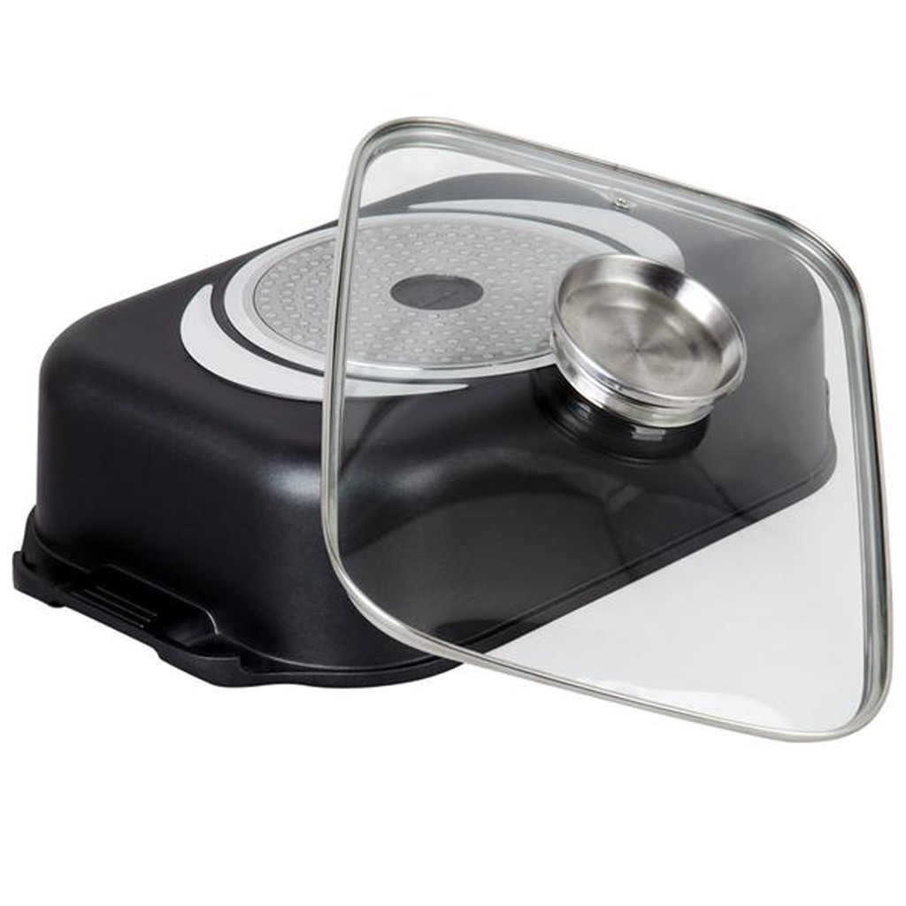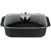 Pekáč so skleneným poklopom je jedným z klasických pomocníkov v domácnosti. Forma na pečenie je vyrobená z hliníka s nepriľnavým povrchom a skleneným vekom. Veko má pevnú rukoväť z nehrdzavejúcej ocele a otvor na únik prebytočnej pary. Je vhodná na prípravu mäsa, zeleniny a iných pokrmov. Vonkajšie rozmery pekáča: 41x26 cm, výška pekáča bez veka 10 cm, výška pekáča s vekom 16,2 cm. Vhodné na indukciu a do rúry (max. 240 °C). Farba čierna.