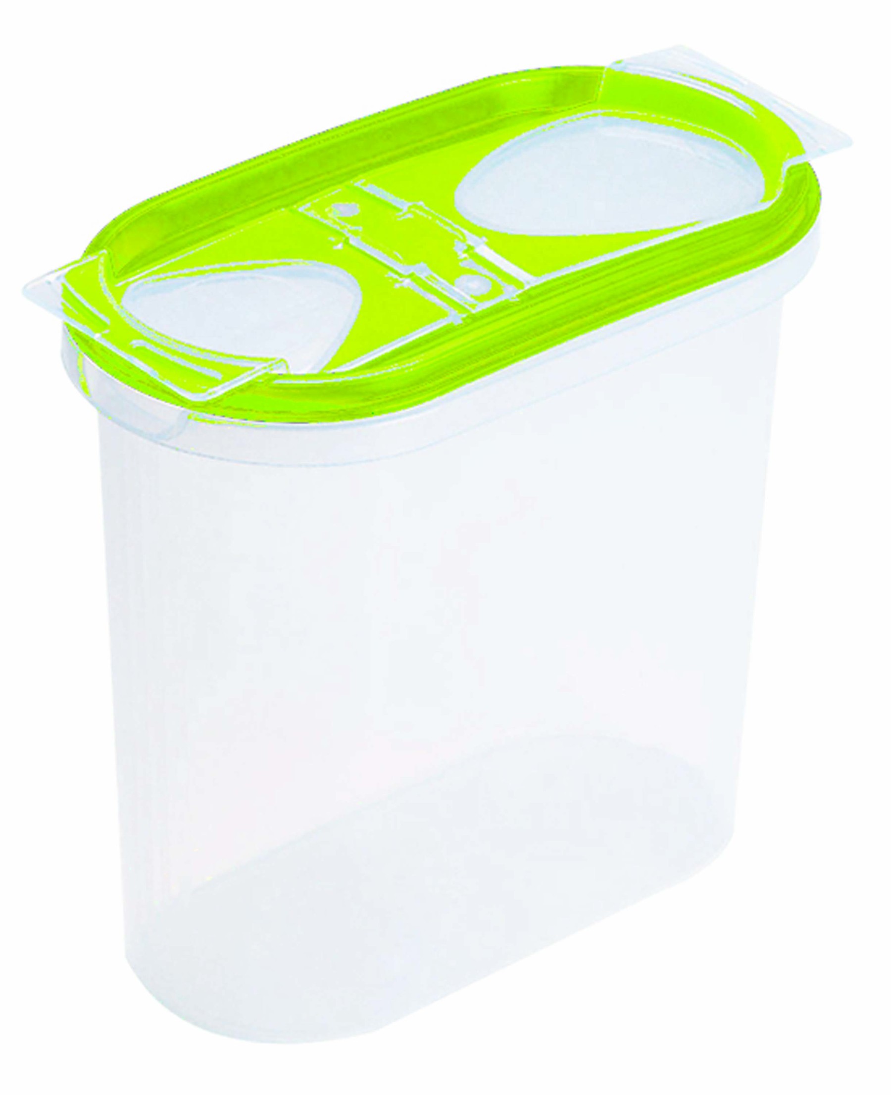 Transparentné prevedenie umožňuje okamžitý prehľad o obsahu, zatiaľ čo farebné viečko dodáva dóze svieži vzhľad. Vďaka kompaktnej veľkosti sa skvele hodí aj do menších kuchýň alebo políc, kde nezaberie zbytočne veľa miesta – a pritom zostáva plne praktická aj pri každodennom používaní.
