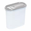 Transparentné prevedenie zaistí okamžitý prehľad o obsahu, zatiaľ čo farebné viečko dodáva dóze svieži vzhľad. Vďaka kompaktnej veľkosti sa skvele hodí aj do menších políc alebo zásuviek – a zároveň sa nestratí ani na otvorenej kuchynskej linke.