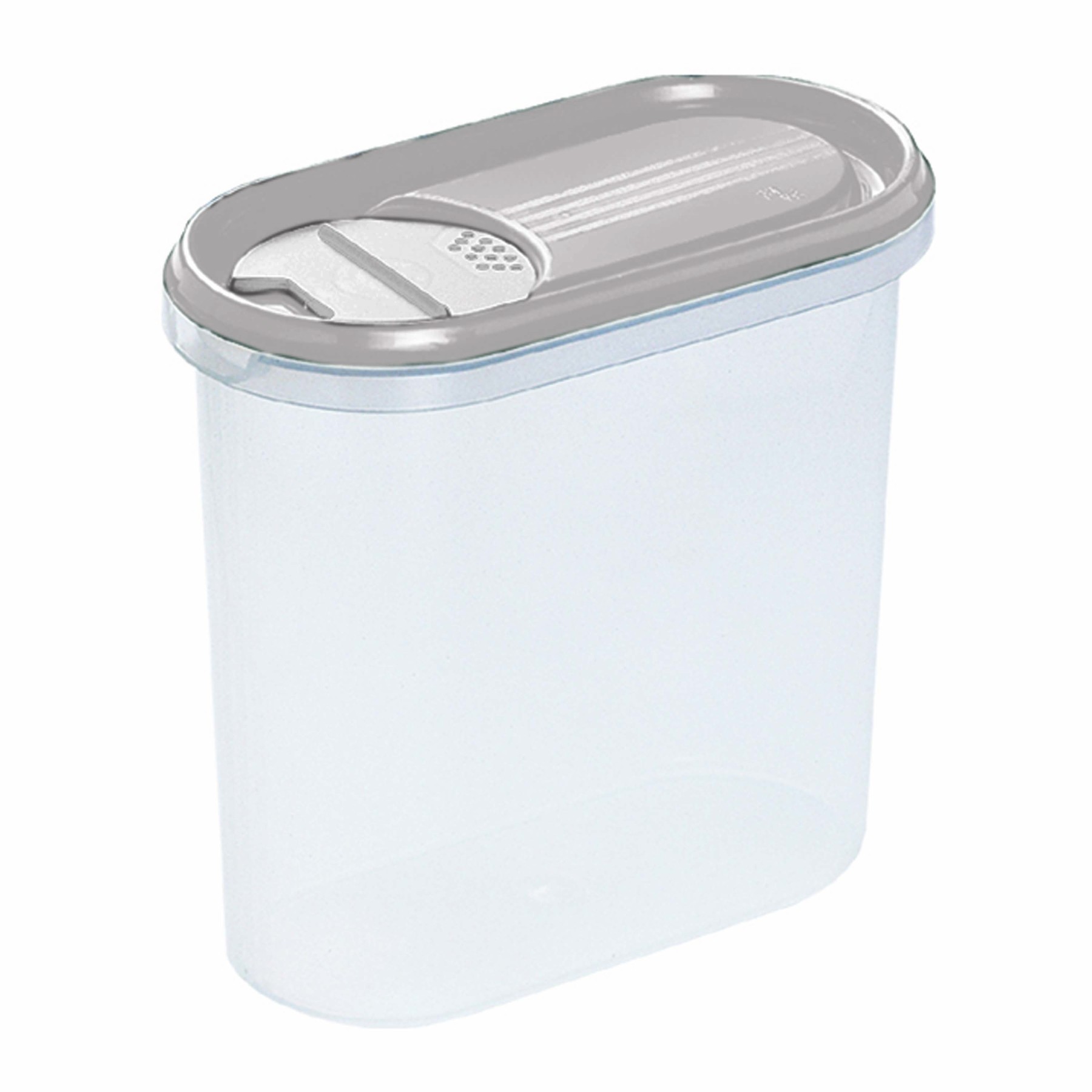 Plastová dóza na suché potraviny s objemom 2 litre je ideálnym riešením pre každodenné skladovanie v kuchyni. Skvele sa hodí na múku, cukor, ryžu, cestoviny, strukoviny alebo kávu – skrátka všetko, čo potrebujete mať prehľadne uložené a vždy po ruke.. Hlavnou prednosťou je praktické viečko s otočným regulátorom, ktoré umožňuje ľahko zvoliť spôsob sypania. Jednoduchým pootočením si nastavíte jemné dávkovanie cez malé otvory, rýchlejšie sypanie väčším otvorom alebo dózu úplne uzavrite. Práca v kuchyni je taká pohodlná, presná a bez zbytočného neporiadku.