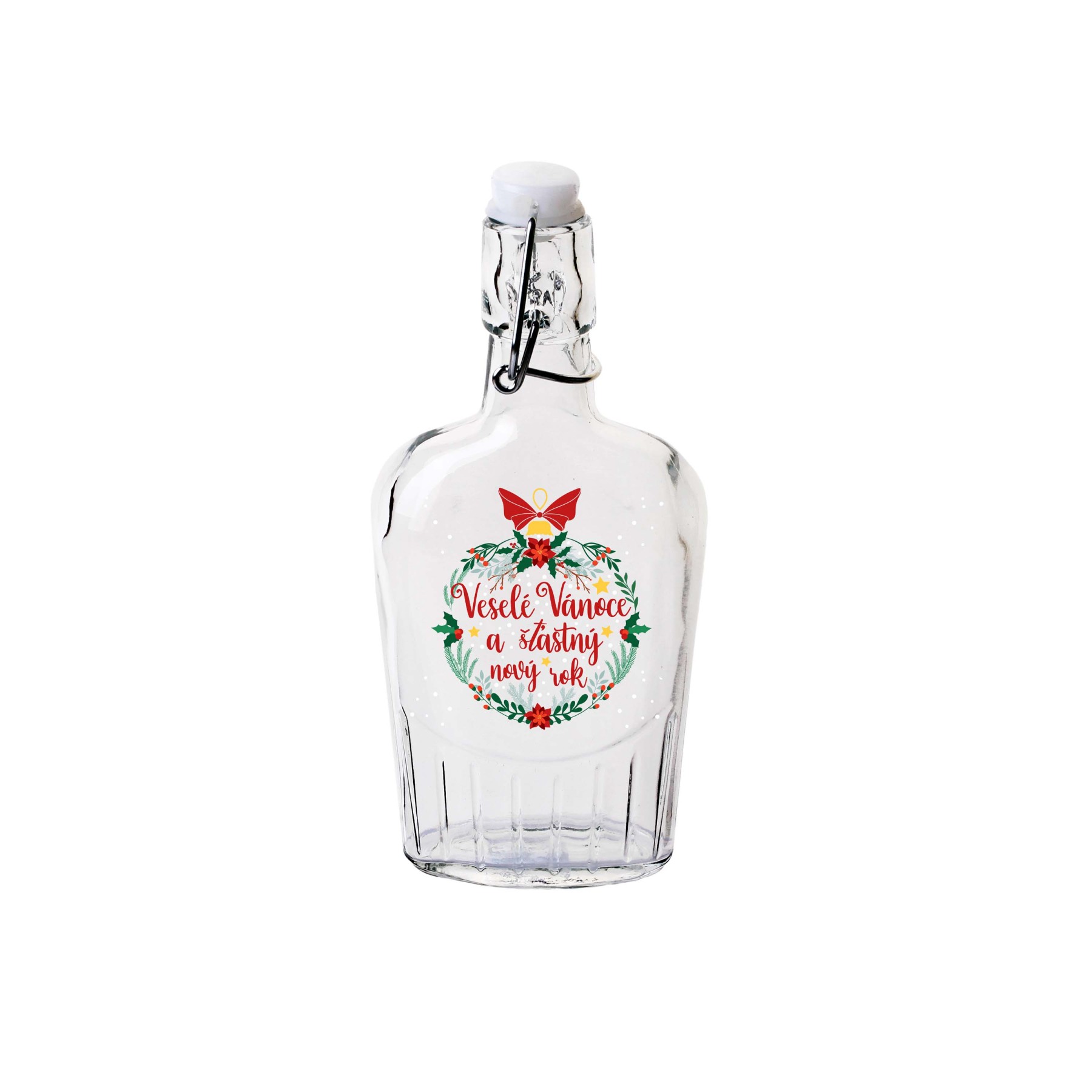 Sklenená ploskačka s patentným uzáverom TORO 300ml Veselé Vánoce