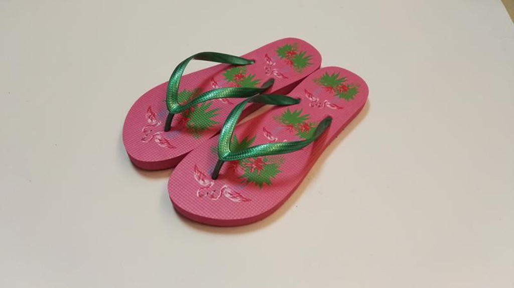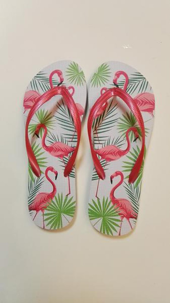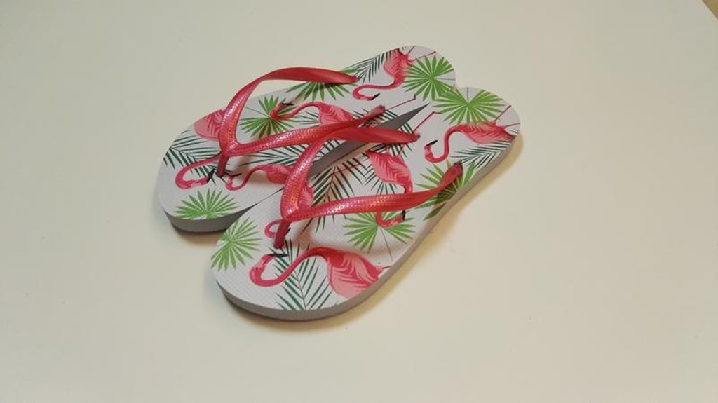 Dámske žabky s veľmi obľúbeným motívom "Plameniaky". Žabky sú pohodlná obuv na horúce letné dni, k vode, ale aj na každodenné nosenie. Veľkosť EÚ 40. Dĺžka 26,6 cm. Rôzne farby. Viac o produkte