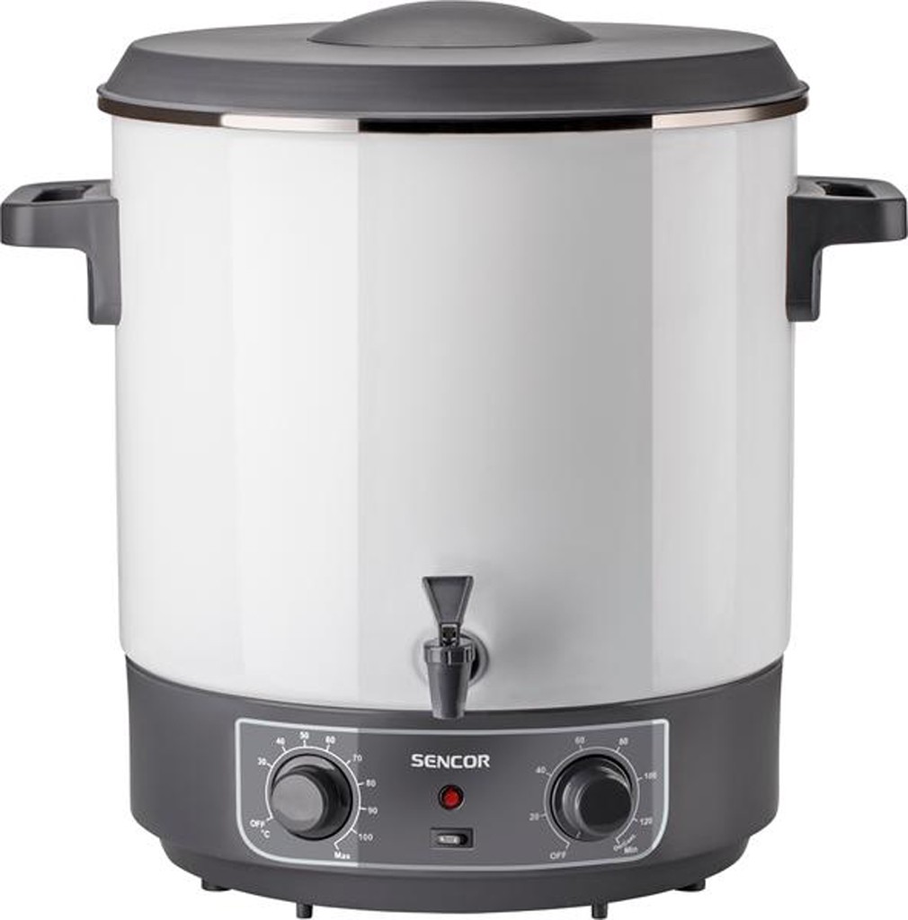 Vlastnosti: Vhodné na varenie v hrnci, v ktorom je možné variť v hrnci, v ktorom je možné variť v hrnci:určený na konzervovanie a sterilizáciu ovocia a zeleniny, vhodný aj na prípravu polievok, horúcich nápojov alebo omáčok, smaltovaný povrch na jednoduchú údržbu, výlevka na prelievanie nápojov, tepelne izolované rukoväte proti popáleniu, skryté výhrevné teleso, 2 režimy konzervovania - nastaviteľný spínač a nepretržitá funkcia, plynule nastaviteľný termostat 30-100 °C, automatická regulácia teploty, kapacita 14 nádob na konzervovanie s objemom 1 l, zvuková signalizácia pri dosiahnutí nastavenej teploty, ochrana proti prehriatiu, ochrana proti prehriatiu počas nečinnosti